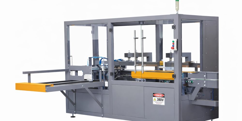 Armadora automática para caixas de papelão ondulado no formato maleta americana ou display. Construção em Aço Carbono SAE 1020 revestido com pintura eletrostática pó ou Aço Inox AISI 304 fosqueado. Fechamento do fundo através de fita adesiva plástica ou adesivo hot melt.